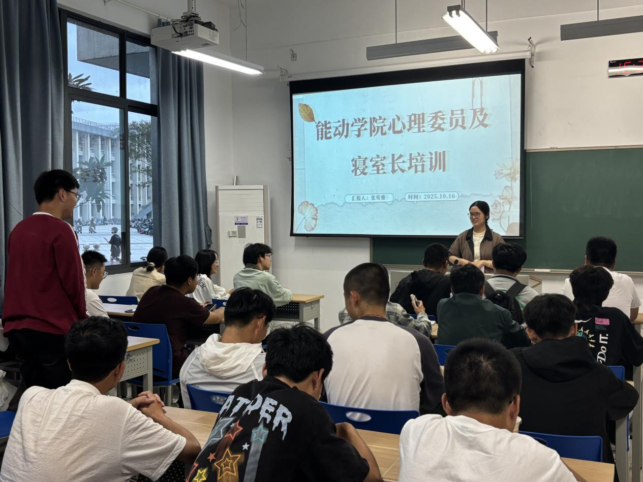 为进一步加强新生心理健康教育工作,充分发挥寝室长和心理委员在学生心理健康支持体系中的重要作用,能动学院于10月16日召开了2025级新生心理委员及寝室长培训会。学院心理辅导员张莺雅老师主持本次会议,全体新生寝室长及心理委员参加。