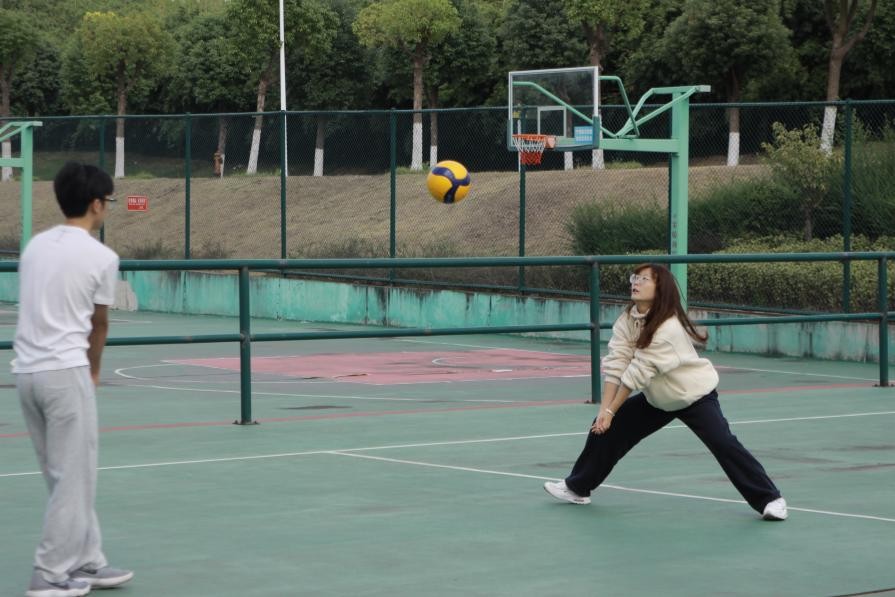 足球颠球场上,同学们灵活控球,足球在脚尖轻盈跳跃,计数声与掌声此起彼伏;排球垫球区,选手们沉着稳健,每一次手臂与排球的精准接触,都展现出扎实的训练功底。