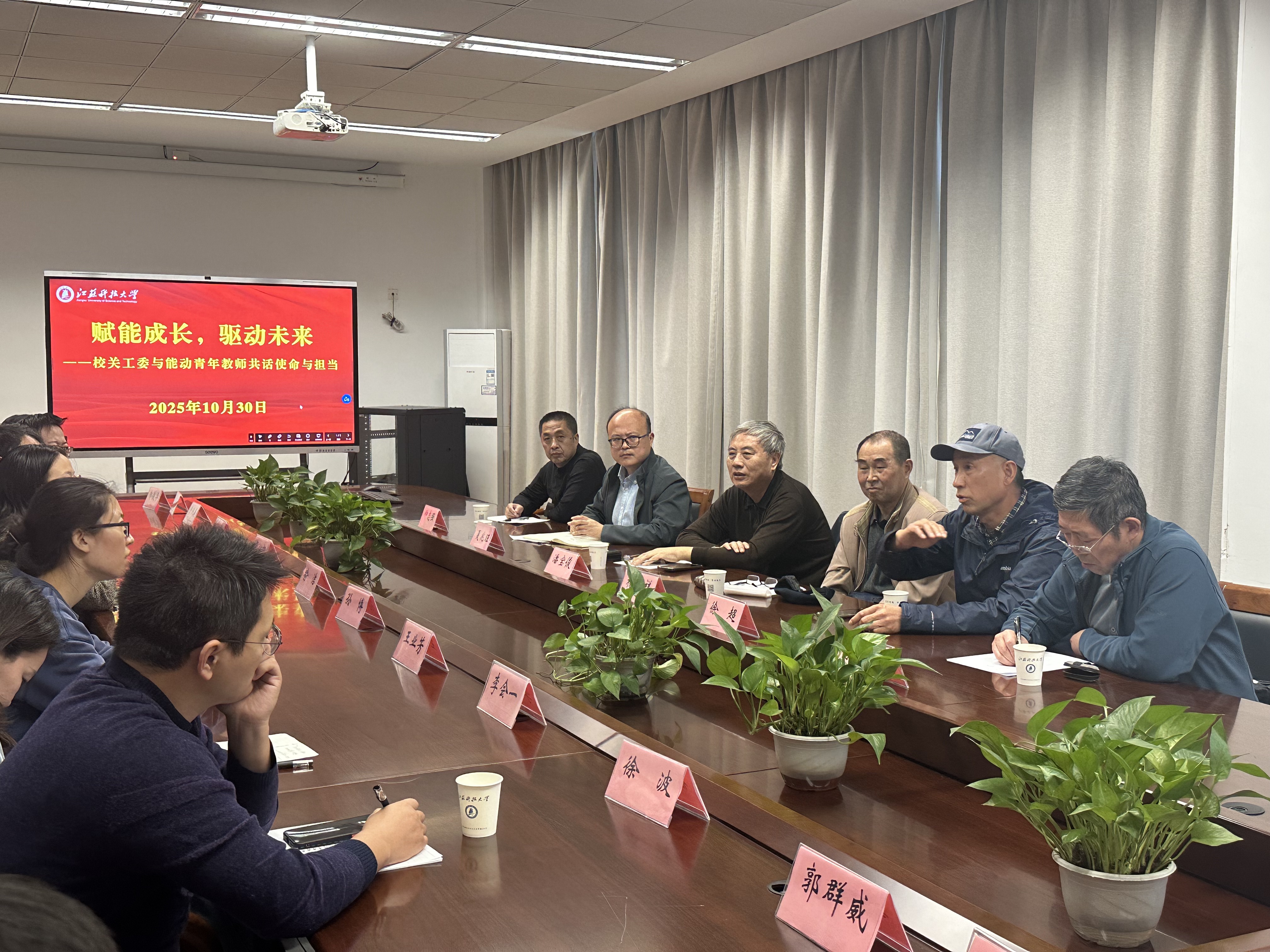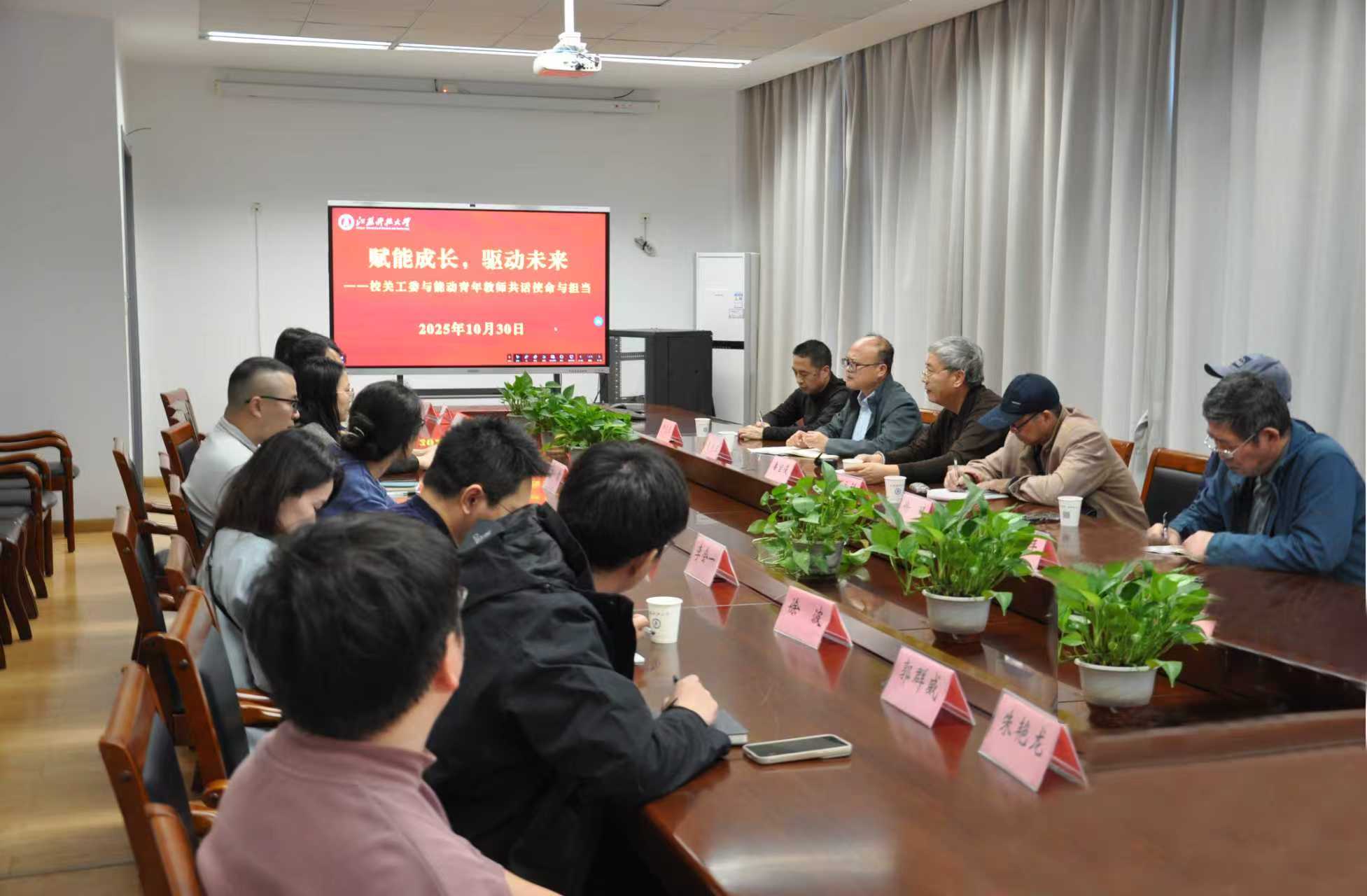 为全面助力青年教师职业发展,夯实教学科研基本功,2025年10月30日,关工委“行知驿站”专家潘宝俊、杨永祥、徐超、仲志强、陈育平一行应邀走进能动学院,与近三年新入职的青年教师代表举行“赋能成长,驱动未来”主题座谈。座谈会由学院副院长夏兆旺主持。